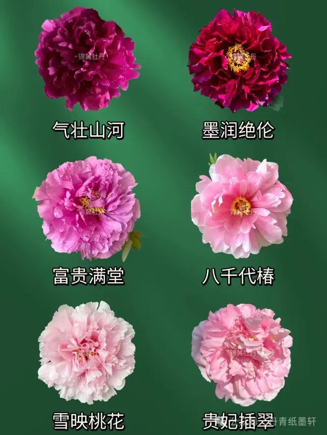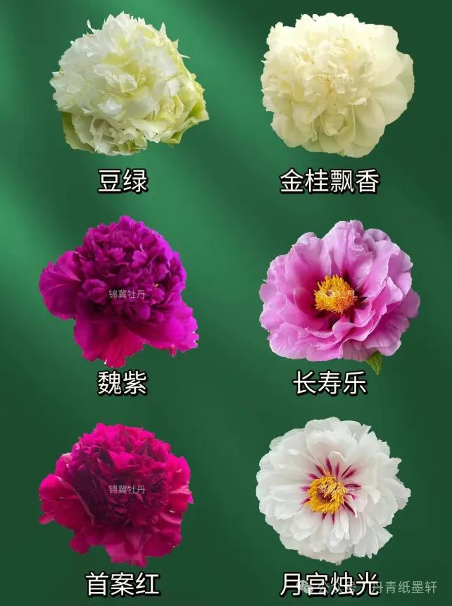 六、紫色系(高贵典雅)魏紫 – 紫红色,皇冠型,瓣多而皱,极为丰满,四大名品之一。葛巾紫 – 紫红色,蔷薇型,花大色深,传说为“葛巾”化身。紫绒 – 紫黑色,千层台阁,瓣质如绒,有光泽。墨紫 – 深紫近黑,皇冠型,庄重神秘。烟笼紫 – 浅紫色,荷花型,花瓣半透明如烟笼。(来源:丹青纸墨轩)