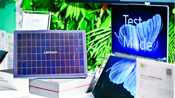 Yoga Solar PC是联想推出的一款太阳能电脑,其能量转换效率超24%, 户外直射30分钟延长1小时续航。每台Solar PC生命周期能额外带来25Kg的碳减排量。同时,这台电脑很轻薄仅有15毫米厚,仅1.2千克重。为常需户外办公的用户提供了“永不断电”的绿色解决方案。