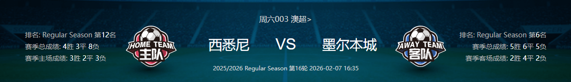 周六003 澳超 西悉尼漫步者VS墨尔本城