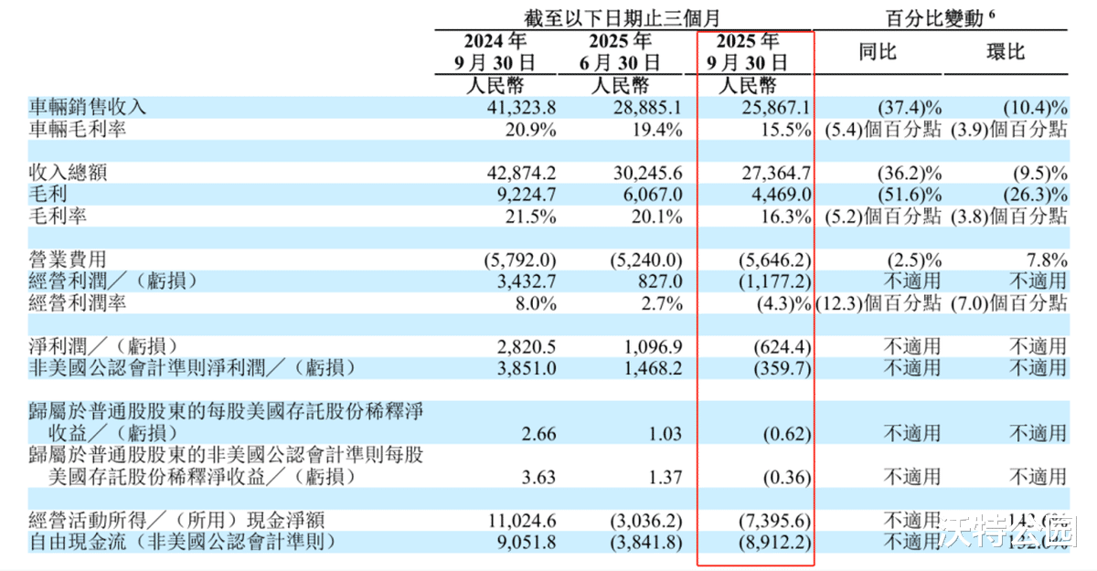 先来看几个关键数据:总营收达到274亿元,同比减少36.2%;汽车总交付量93211辆,同比减少39%;利率16.3%,上年同期为21.5%。理想把这次亏损的主要原因归结于Mega车型的召回费用计入到了Q3,按照理想的披露,花费超过11个亿,如果扣除这些费用理想还是盈利的。但是事情确实不能这么算,召回也是车企需要面对的问题之一,是自己产品没做好,本来这些费用都要算在运营费用里。别家也召回,但没听说会拿出来单独聊。