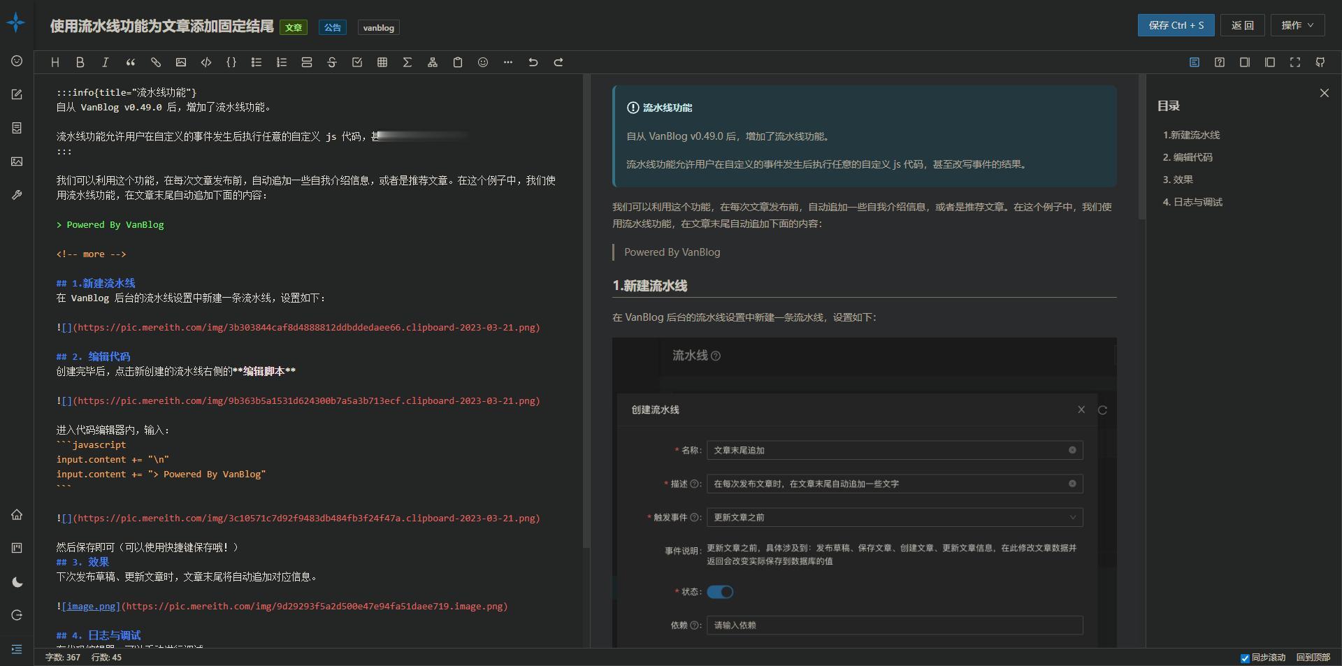 此外,VanBlog 还具有无限的可扩展性,提供完备的后台管理面板,支持黑暗模式、移动端、一键上传剪贴板图片到图床,并带有强大的编辑器。