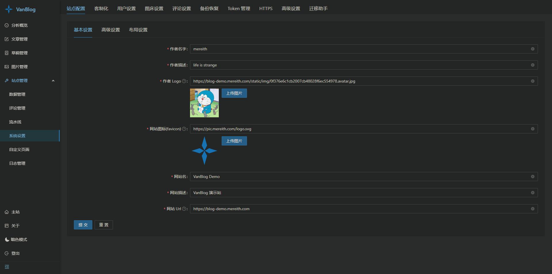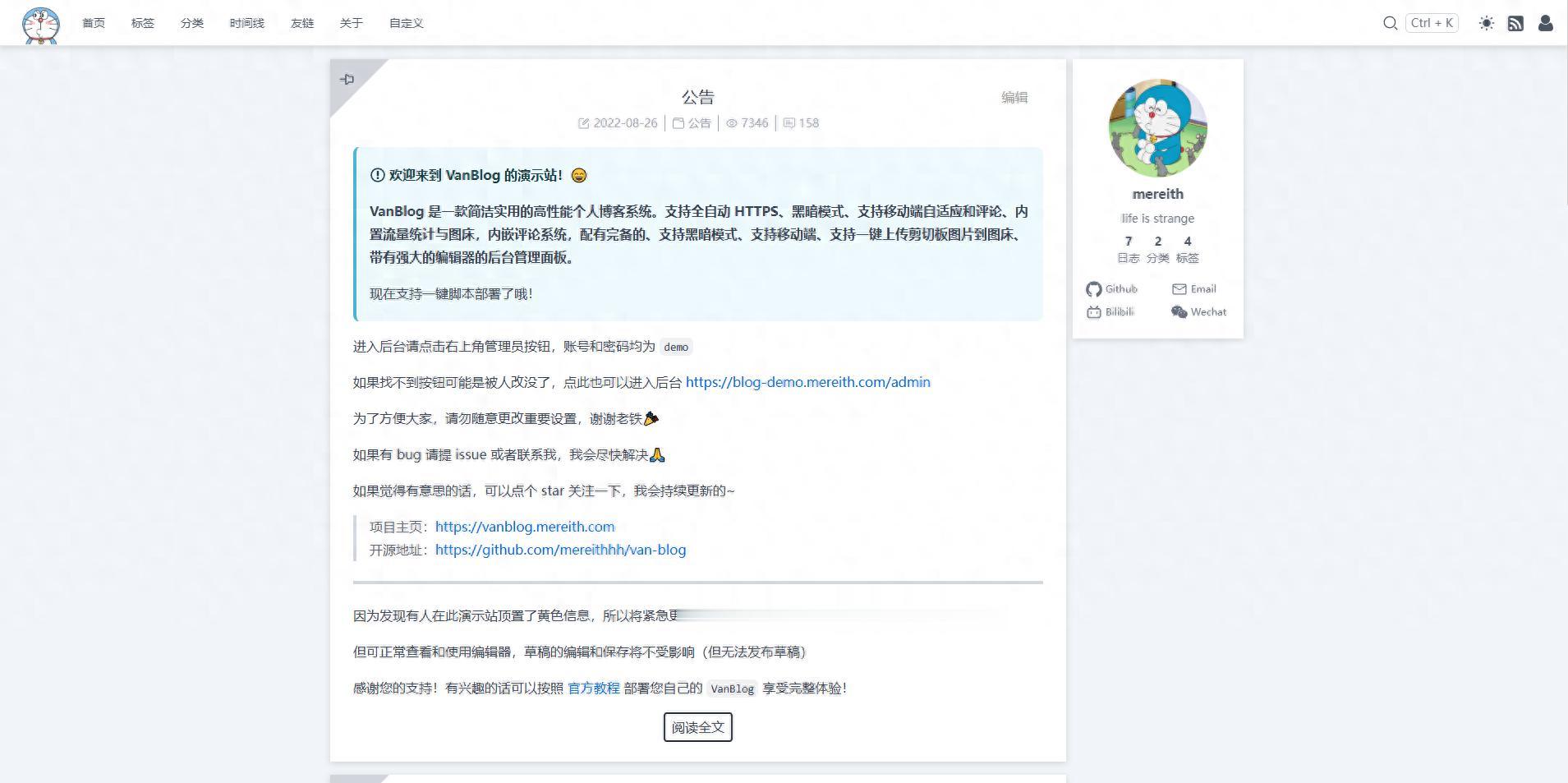 https://vanblog.mereith.com/reference/config.html功能预览前台首页首页
