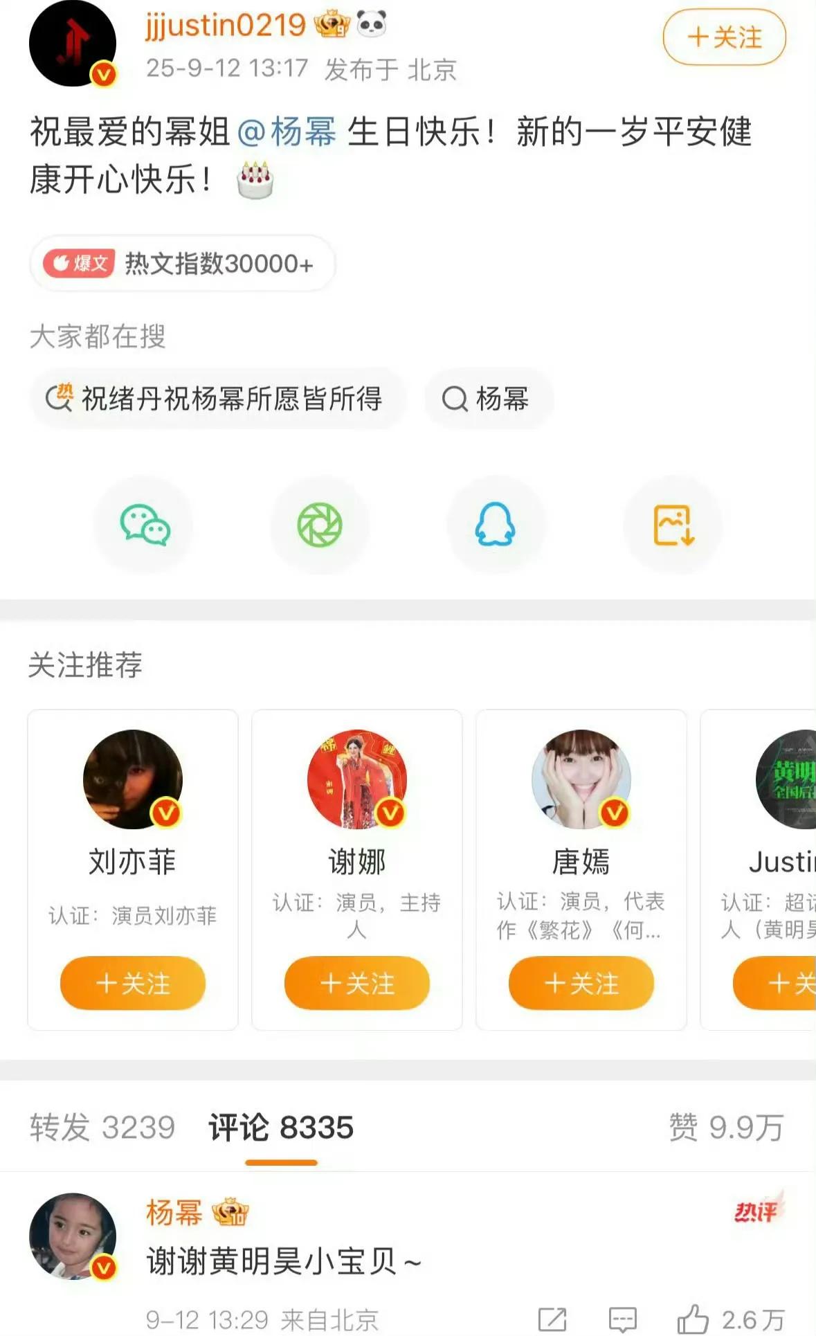 更不用说黄明昊——这位小杨幂16岁的弟弟,已是第七年卡点庆生,一句“小宝贝”的回复甜齁众人。