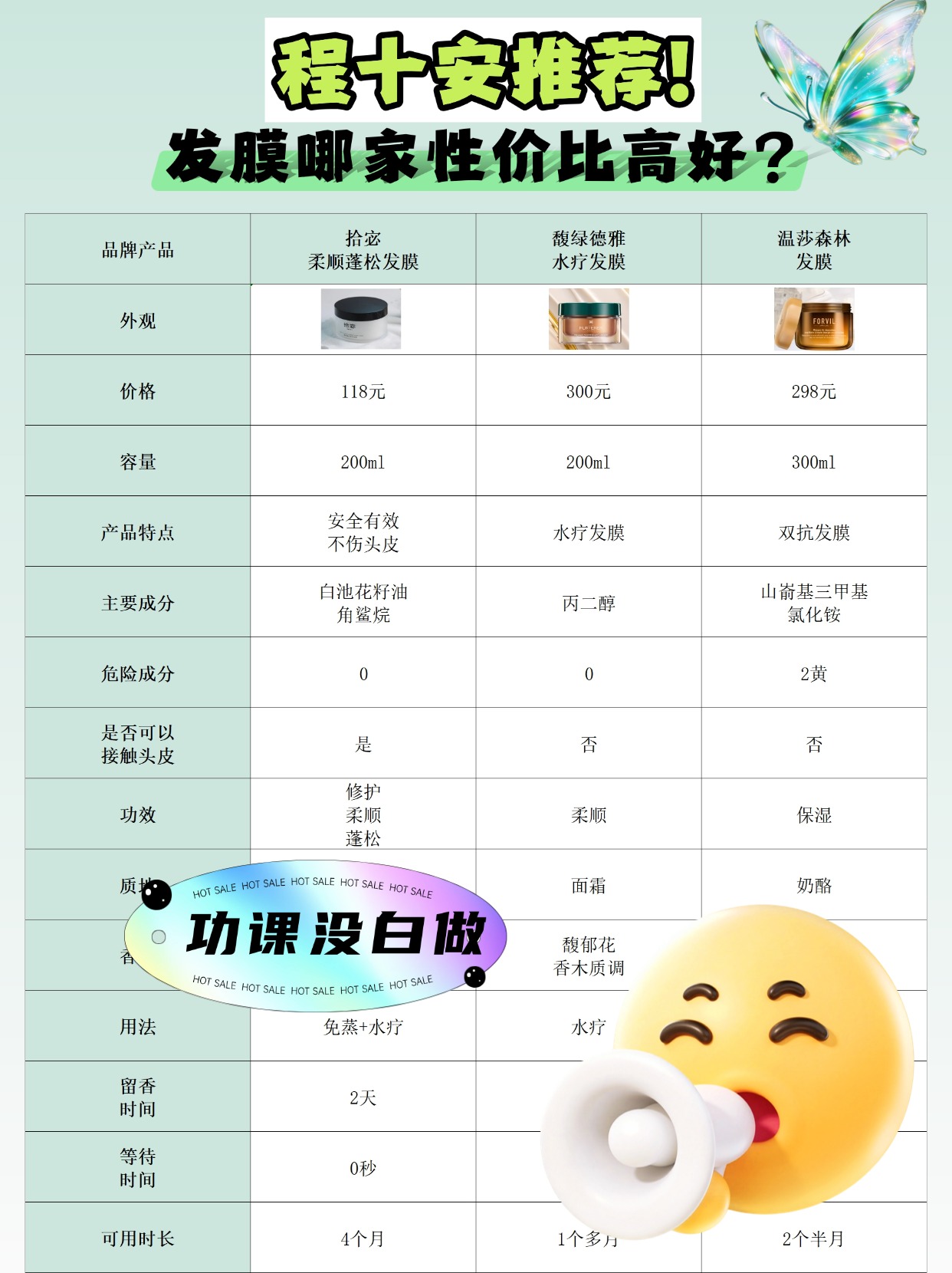 不少姐妹问护发发膜什么牌子好用,还纠结程十安推荐的发膜中哪款性价比最高,今天帮大家理清两个问题:发膜有必要买贵的吗?发膜适合什么发质?程十安推荐的款大多适配大众发质,但性价比高低还是看自身需求,真没必要盲目追贵的。平价款里含泛醇、小分子多肽的,就能满足基础修护需求,适合健康或轻度受损发质;贵价款多添加专利植萃成分,更适合严重干枯分叉发质。性价比不是看价格,而是看成分和发质适配度,比如细软发质选贵价厚重款,反而会压塌发根,性价比极低。我实测过不少推荐款,发现适配自己发质的平价款,效果不输贵价。下面是我总结的一些发膜选购注意事项,帮大家选到高性价比款,不花冤枉钱~