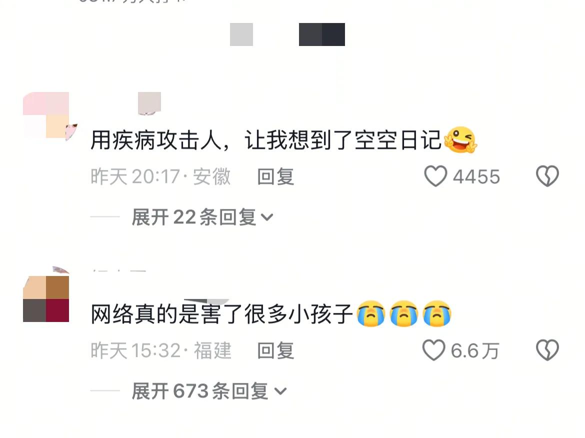 却用一种非常严重的疾病来作为网络烂梗,拿出来嘲笑别人,这样的行为不但是对别人的不尊重,也是对生病的人不尊重。