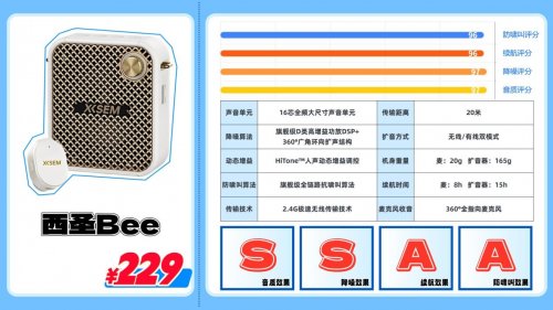 西圣Bee采用了旗舰级全链路抗啸叫算法,六大环节级联优化,从信号采集、实时反馈检测到相位抵消与多级DSP处理,任何啸叫、回声都能被精准抑制,确保大音量输出时依然纯净稳定。听说西圣在技术上创新,不是简单的“声音放大”,而是一次对扩音底层的硬核重构。它内置旗舰级D类高增益功放DSP,结合360°广角环向扩声架构,彻底打破传统小喇叭“音量小、传不远”的天花板,实现全场澎湃覆盖、放得更大更稳。同时创新搭载360°全指向无线麦克风+16芯全频巨声单元,哪怕边走边讲,声音依旧洪亮穿透、细节清晰,从“听得清”跃升到“传得远”。更关键的是,独家HiTone™人声动态增益引擎与全链路抗啸叫算法双核协同,使得在 音质解析力、抗啸叫稳定性、低延迟传输率等核心维度,均处于行业顶尖水准。
