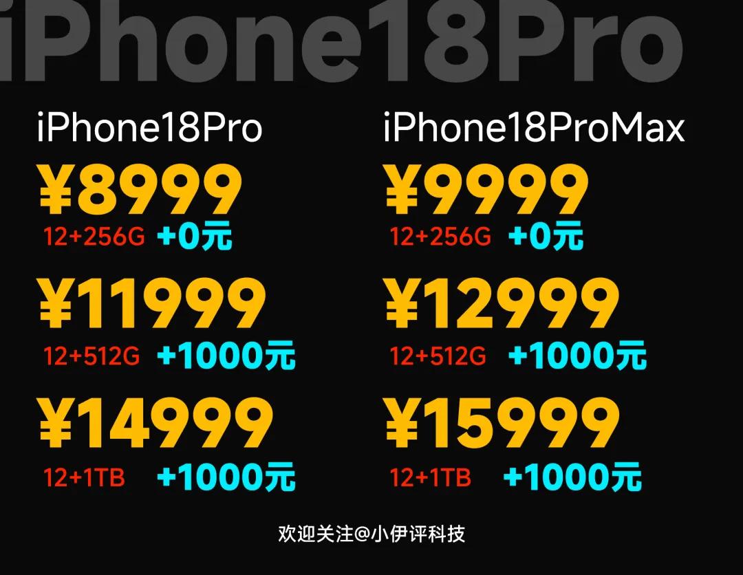 其中iPhone18Pro系列的价格根据目前已知的信息它的定价策略是这样的——起步版不涨价,高配版涨价。我个人预测的价格如下。