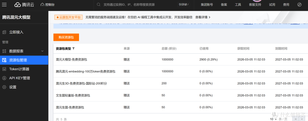 首先呢打开腾讯混元大模型,原因无他,送百万积分,够测试用了。