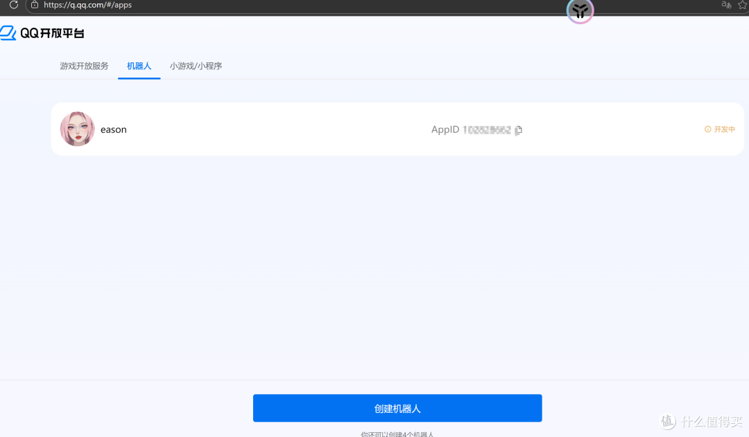 那么接下来呢,开始第二步,接入qq机器人。进入qq开放平台创建机器人
