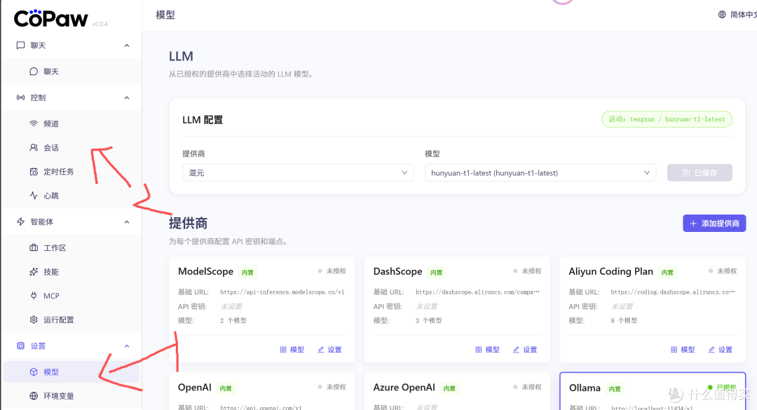 然后回到copaw模型界面,添加自定义供应商,id和名称随便写这个base url填https://api.hunyuan.cloud.tencent.com/v1