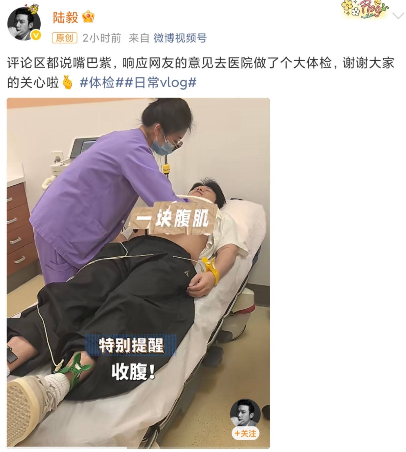事情的起因是,不少网友在陆毅的社交动态下留言,提醒他嘴唇颜色看起来有些发紫,建议他去检查一下心脏。面对大家的善意关心,陆毅没有丝毫敷衍,立刻带着妻子鲍蕾去了医院,还贴心地把体检过程拍成视频分享出来,配文里满是对网友的真诚感谢。
