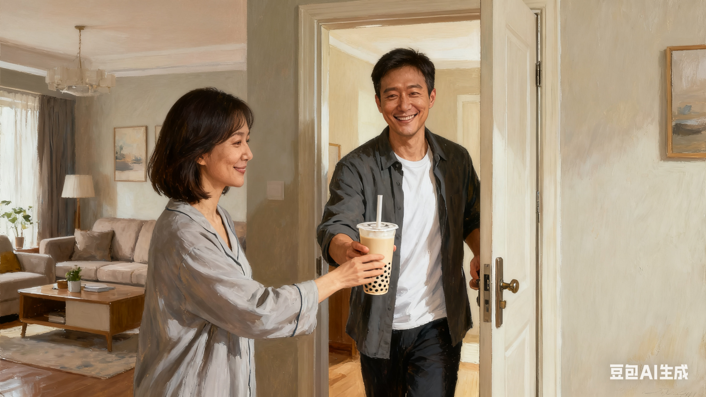 现在,先生提着奶茶推门而入。我接过那杯沉甸甸的奶茶,珍珠果然足足占了半杯。