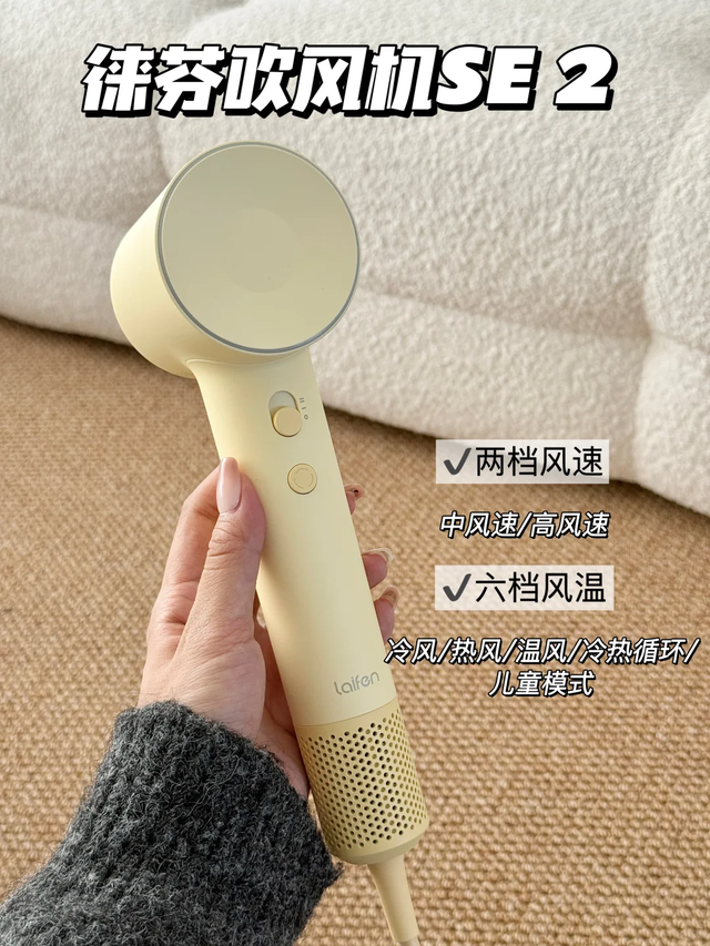 ①徕芬高速吹风机 SE 2这款给我最大的感觉就是虽然风力很大,但是吹头发的时候没有那种拉扯头皮的感觉,而是很顺滑的吹走水分,基本上2分钟就能吹完整头长发,温控水平真的绝了,对着吹也没有那种烫头皮的感觉。