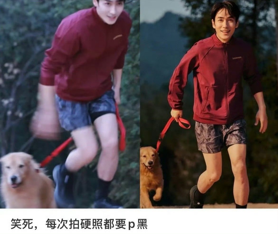 这种“硬汉梦”的执着,甚至产生了一些令人捧腹的“副作用”。最著名的梗莫过于那只无辜“受害”的金毛犬。在一次拍摄中,为了压暗朱一龙的肤色,后期将整张照片的色调调得极深,结果导致同框的金毛犬原本奶油色的毛发,被硬生生修成了“酱油色”或“老抽色”。这一幕被眼尖的网友发现后,迅速成为网络热梗,“金毛哭晕在厕所”、“谁来为花生(金毛)发声”等调侃层出不穷,大家纷纷笑称朱一龙达成了“硬汉梦”,却让无辜的金毛“背了锅”。