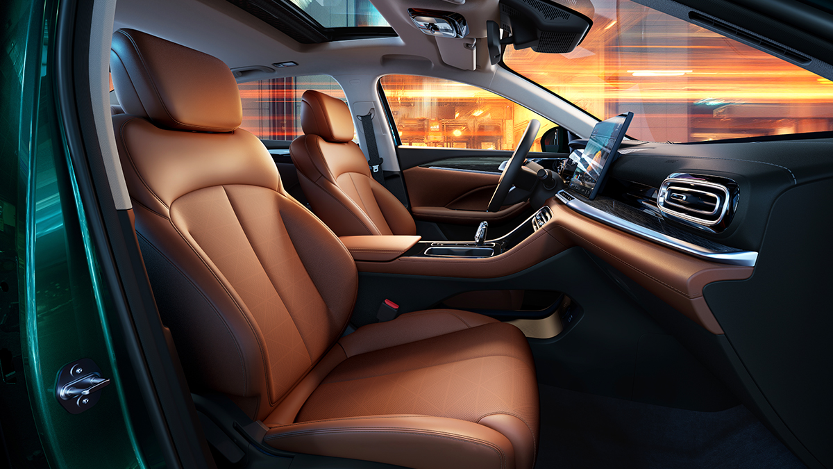 进入车内,第5代帝豪以棕色内饰营造出家的温馨感,皮质打孔座椅与豪华车同款双拼多功能皮质方向盘,触感温润高级,软包面积达10.2㎡,触手可及皆是品质。细节上,8颗钢琴式按键优雅列阵,空调开关等高频功能操作便捷;双层镀铬装饰的出风口、同级首搭的水晶挡把与50W风冷无线快充等配置,更显高端格调。最值得关注的是其搭载的Flyme Auto智能座舱,搭配同级领先的14.6英寸高清大屏,无论是导航、娱乐还是车机互联,都能带来沉浸式交互体验,让家庭出行的每段路程都更轻松有趣。