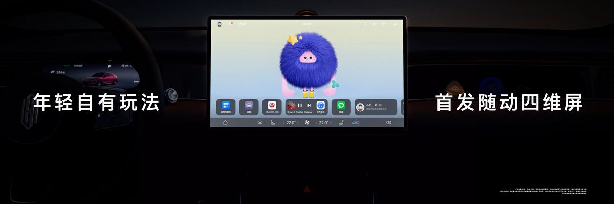 尚界Z7内饰亮点也在发布会上首次曝光,首搭全新的随动四维屏①,可以自动转向、智能迎宾,呼叫小艺就能转向应答!更符合人体工程学设计,情绪价值拉满!