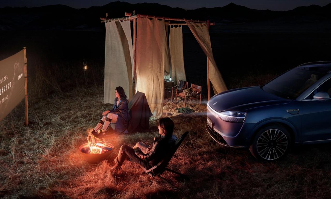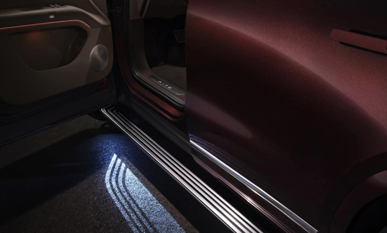 例如,根据特定节日或中国文化,推出各式各样的迎宾灯效,像现在是10月,我们伟大祖国生日,你可以在中控里的“灯光”设置将迎宾灯效切换为“人间星河-国庆版”为祖国庆生。尾灯同样如此,它的智能交互矩阵大灯,有各种场景、风格的灯语可以给到你选择。当然啦,除了炫技以外,华为车语2.0其实还有很多实用性极强的功能——当投影仪,让你在户外观影、K歌,甚至进行一些互动游戏;当智能动态光毯,在夜间行车时,给用户更安全的行车指引。