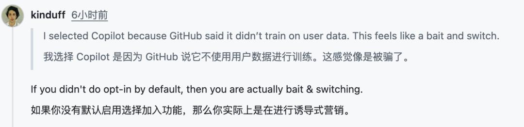 GitHub 提到微软、Anthropic 和 JetBrains 也在采取类似措施,以说明自己并不是孤例。与此同时,GitHub 直接回应了一个尖锐问题:如果真实用户代码对模型这么重要,这是否意味着 GitHub 的竞争优势更多来自现有用户基础,而不是更好的研究?