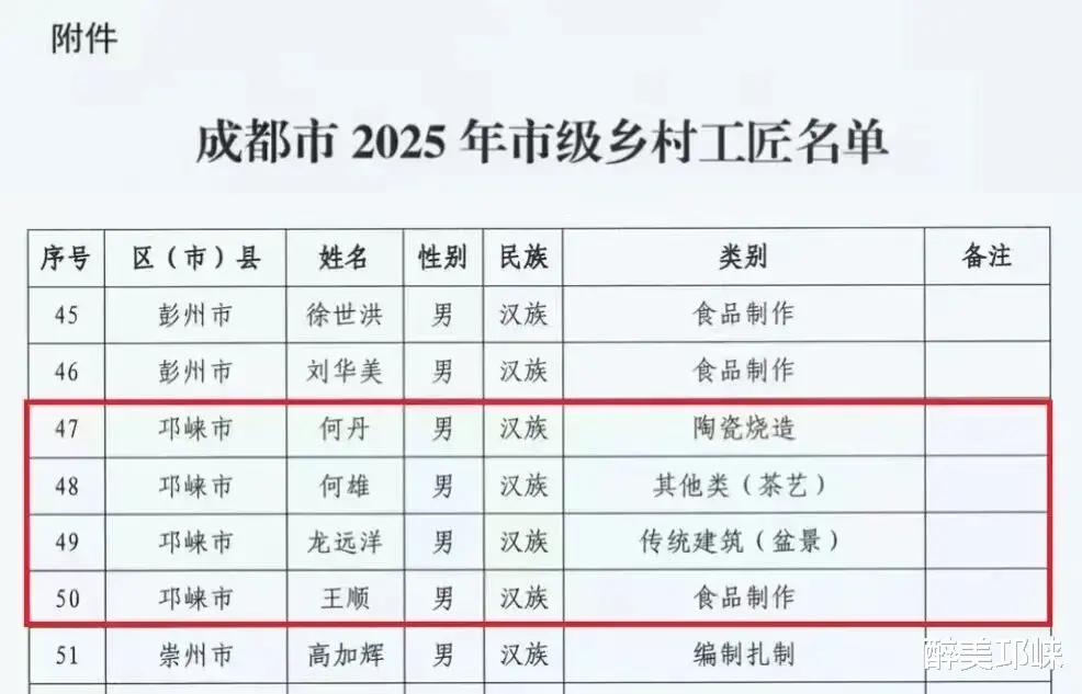 何雄,高级茶艺师、长嘴壶茶技非遗传承人。他自12岁起拜师学习茶艺,精通长嘴壶茶技与蒙顶甘露、黄茶等手工制茶技艺。为精进技艺,他遍访全国茶区,深度交流茶艺,其“禅意手工茶制作技艺”于2019年入选非遗人才智库。他长期致力于传承推广邛茶文化,累计培养手工制茶徒弟37人,多次主持邛茶文化研学讲解,让近5万人领略到邛茶魅力。2023年,他自主创立茶叶品牌“火井云露”,并创办“一把壶”文化艺术交流工作室,为邛茶文化持续注入活力。