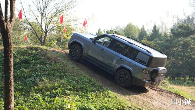 在面对爬坡路段,深蓝G318的316kW综合功率与572Nm扭矩配合ET全地形系统的加持下,通过调节魔毯悬架高度提升通过性,顺利完成通过爬坡测试,依托45000N·m/deg的车身刚度,在轻松拿捏越野的同时,又保证了安全性。相比之下,没有“锁”的钛7,要上大角度的坡就需要小心翼翼了。虽然最终也完成了挑战,但总感觉钛7硬得还不够彻底。