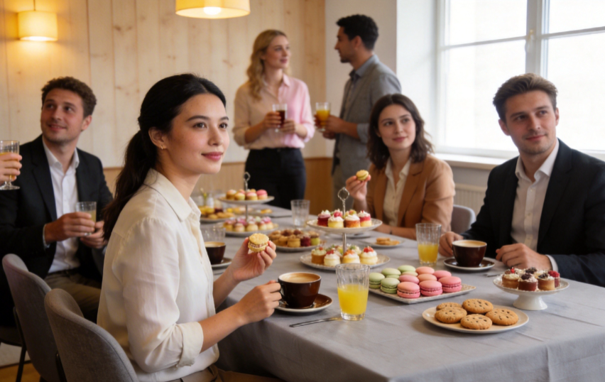 更值得一提的是,章叔叔城市精英涵盖多种用餐形式,自助餐、桌餐、BBQ、茶歇等应有尽有,彻底打破团建用餐的形式局限。想吃热闹自在的自助,这里有丰富菜品随心选,从热菜、冷盘到甜品、饮品,一站式满足所有口味;想走仪式感路线,精致桌餐摆盘讲究、菜品丰富,适配正式团建场景;想体验户外烟火气,专业BBQ团队上门服务,烤串、海鲜新鲜现烤,氛围感拉满;若只是小型团建或会议间隙,精致茶歇搭配咖啡、甜点,轻松又惬意,让团建更有格调。
