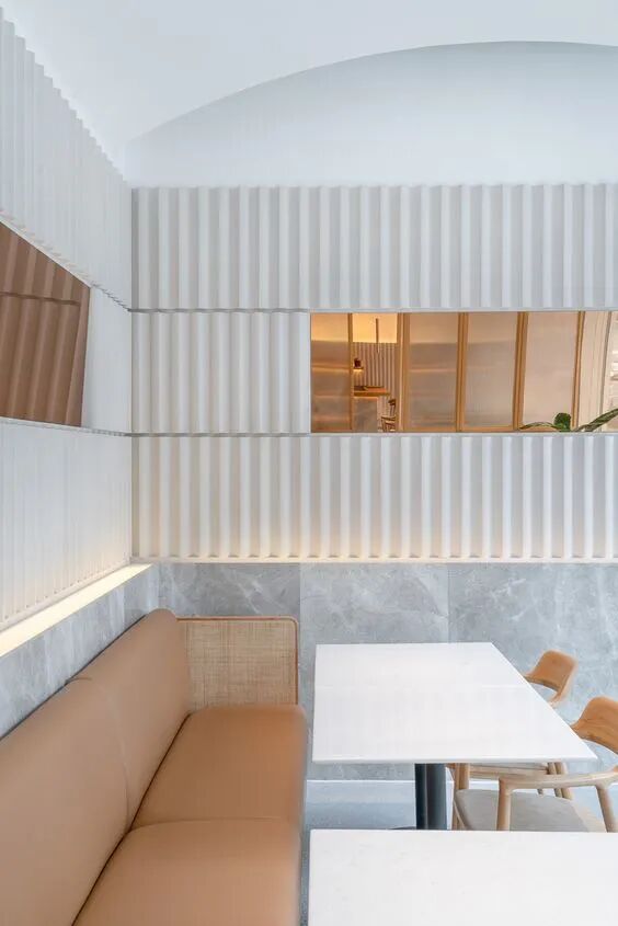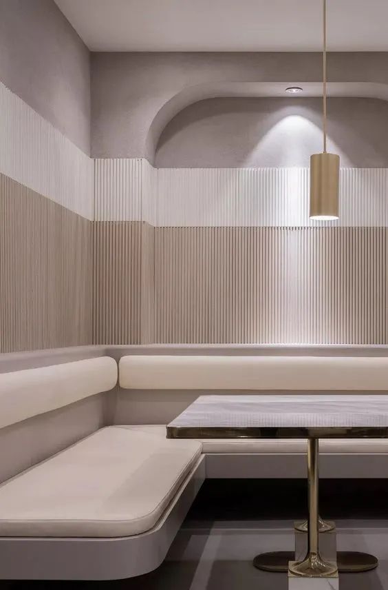 卡座的设计简约又好看,随便加一些元素的点缀就会非常时尚好看,卡座的设计还会使原本狭窄的空间显得宽敞明亮。