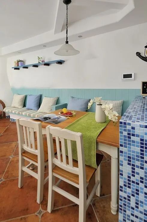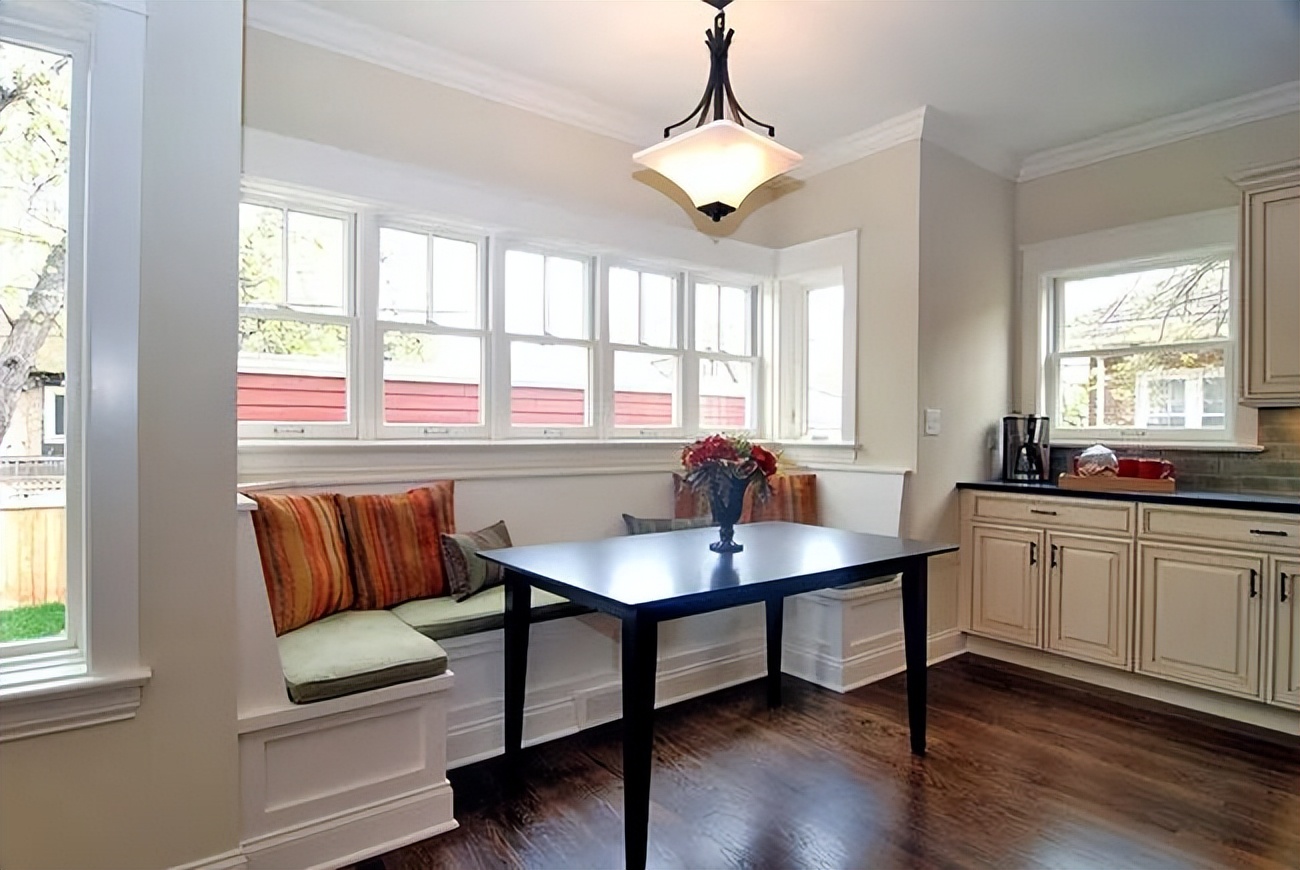 小户型餐厅本来空间就比较拥挤,如果再摆上凌乱的桌椅会更显拥堵。那么这时候不妨给餐厅安上一排卡座,美化了空间的同时再也不怕家里来人坐不下了!而且卡座的种类繁多,可以根据家里的风格进行设计。