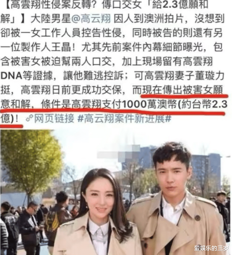 最后,董璇话1000万澳币和那名女子和解,赎回丈夫高云翔。