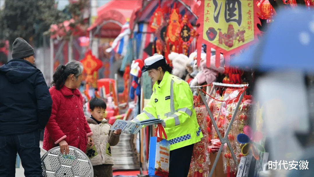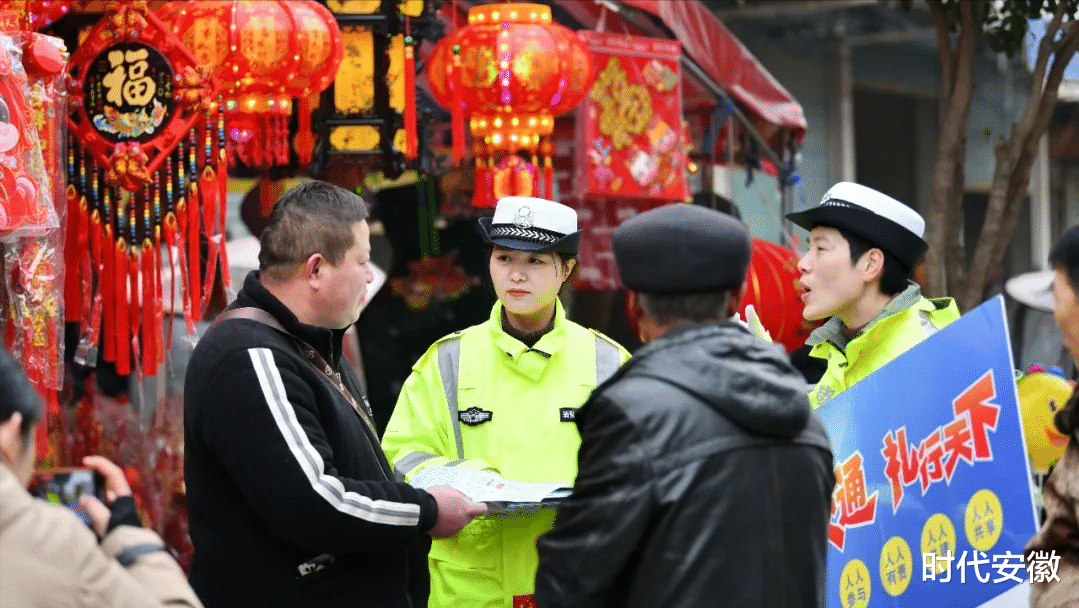 在地城镇年货集市上,宣教民警辅警结合群众出行特点和辖区道路交通实际情况,向赶集的群众和商贩宣讲出行安全知识,引导大家摒弃交通陋习,树牢“文明交通、礼行天下”的思想,安全文明出行。