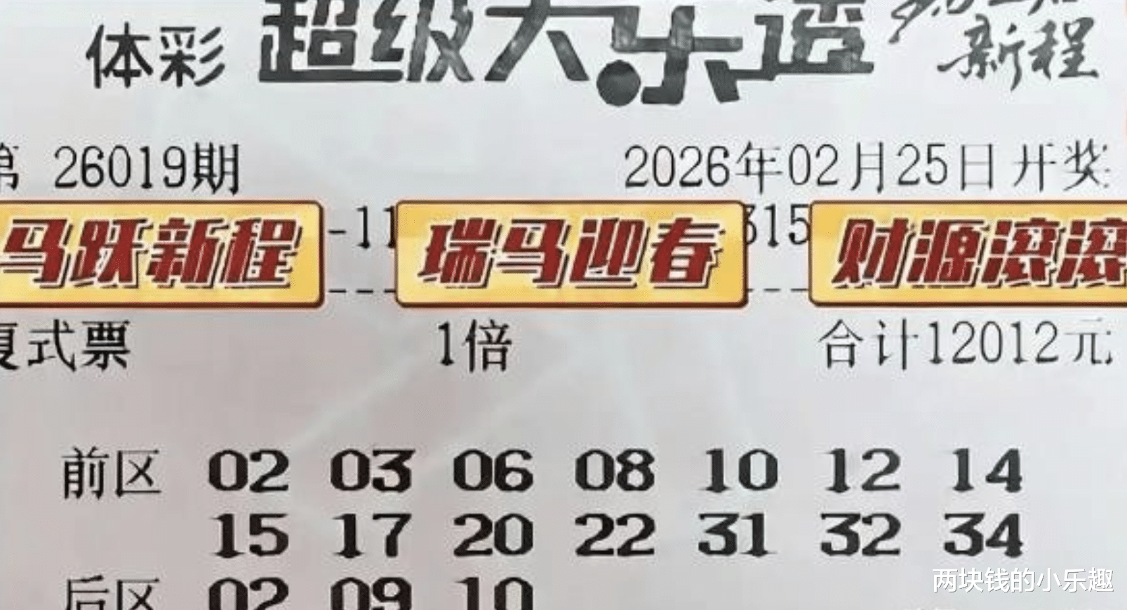 大家好,下面给大家带来的是大乐透第26019期的赏析,本期为大家整理了最新的精彩内容汇总,这是新年的首秀,自然是比较受彩友们关注的,而且都是比较积极和活跃的,比如领衔出场的这张1.2万复式,以及99倍哥等经典已经锁定目标,下面请大家开始欣赏: