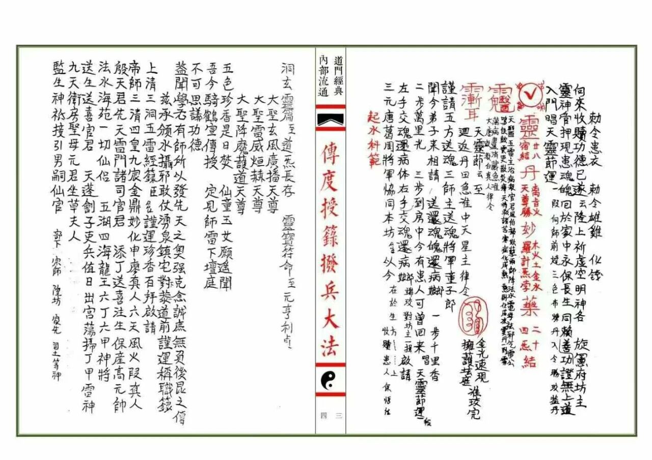 对修行者而言,它是“名登天曹、受箓承法”的入门密钥;对研究者来说,它填补了清代道教仪轨传承的文献空白;对藏家而言,朱墨套绘的符咒、蝇头小楷的批注,尽显古籍的独特质感。正如北宋天师张继先所言,法箓“上可动天地,下可撼山川”,这本合册的价值,早已超越书籍本身。