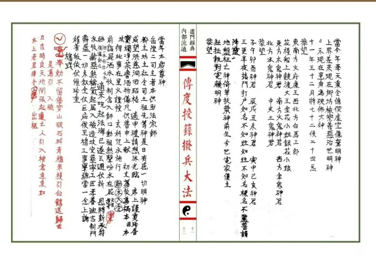 此书虽无明确著者落款,却属道教正一派正统传承,清代手抄本存世量不足百册。全书将传度授籙、拨兵大法、师道送度三大核心板块无缝衔接,小到符咒绘制的朱砂配比、符纸尺寸,大到步罡踏斗的方位口诀、诵经节奏,都标注得细致入微,堪称“活态的道教仪轨实操指南”。