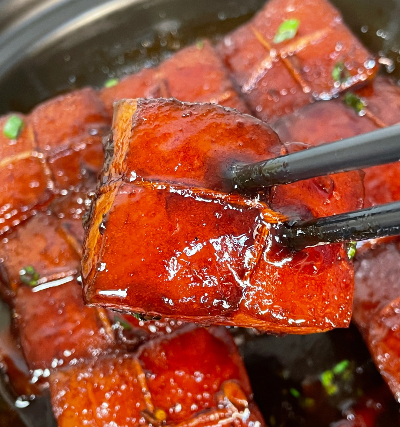 当厨房弥漫着混合着酒香的甜咸气息时,肉块已经悄悄发生蜕变。用筷子轻轻一戳,就像戳进布丁般顺滑。这时掀开锅盖,把肉块翻面,让猪皮充分吸收酱汁的精华。最后开中火收汁,看着酱汁变得浓稠如蜜,咕嘟咕嘟冒着幸福的泡泡。