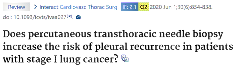 2020年,四川大学华西医院的诊疗团队对穿刺是否会增加胸膜局部复发风险进行了研究。他们从医疗数据库中筛选了8项研究,发现穿刺活检确实会带来更高的胸膜复发风险。