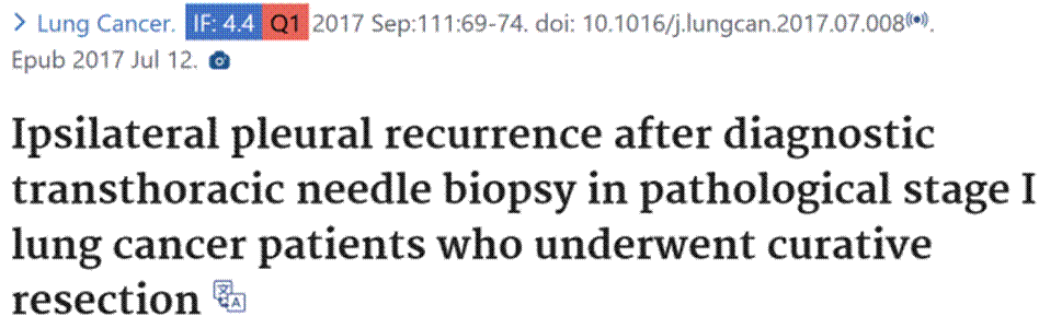 2017年,发表在《肺癌杂志》上的一项研究显示,在392名Ⅰ期非小细胞肺癌患者中,接受穿刺活检的患者胸膜复发率高达9%,显著高于未接受穿刺的2%;穿刺组的局部复发率为19%,同样显著高于非穿刺组的8%。表明尽管穿刺技术已经非常成熟,但仍存在一定的风险。