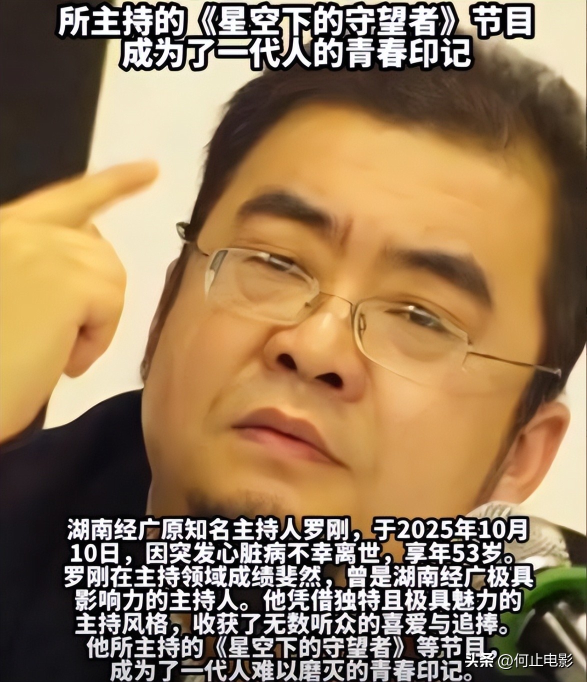罗刚大家不太熟悉,他曾是经广频道主持人,曾主持的《心灵之约》《星空下的守望者》,一度成为经广频道的爆火节目。