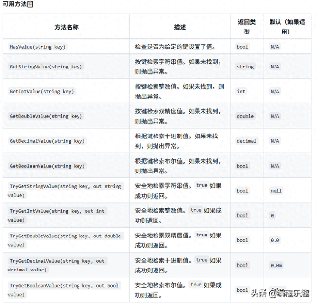 using dotenv.net.Utilities;var stringValue = EnvReader.GetStringValue("KEY");var intValue = EnvReader.GetIntValue("PORT");var boolValue = EnvReader.GetBooleanValue("ENABLE_FEATURE");更多的方法如下: