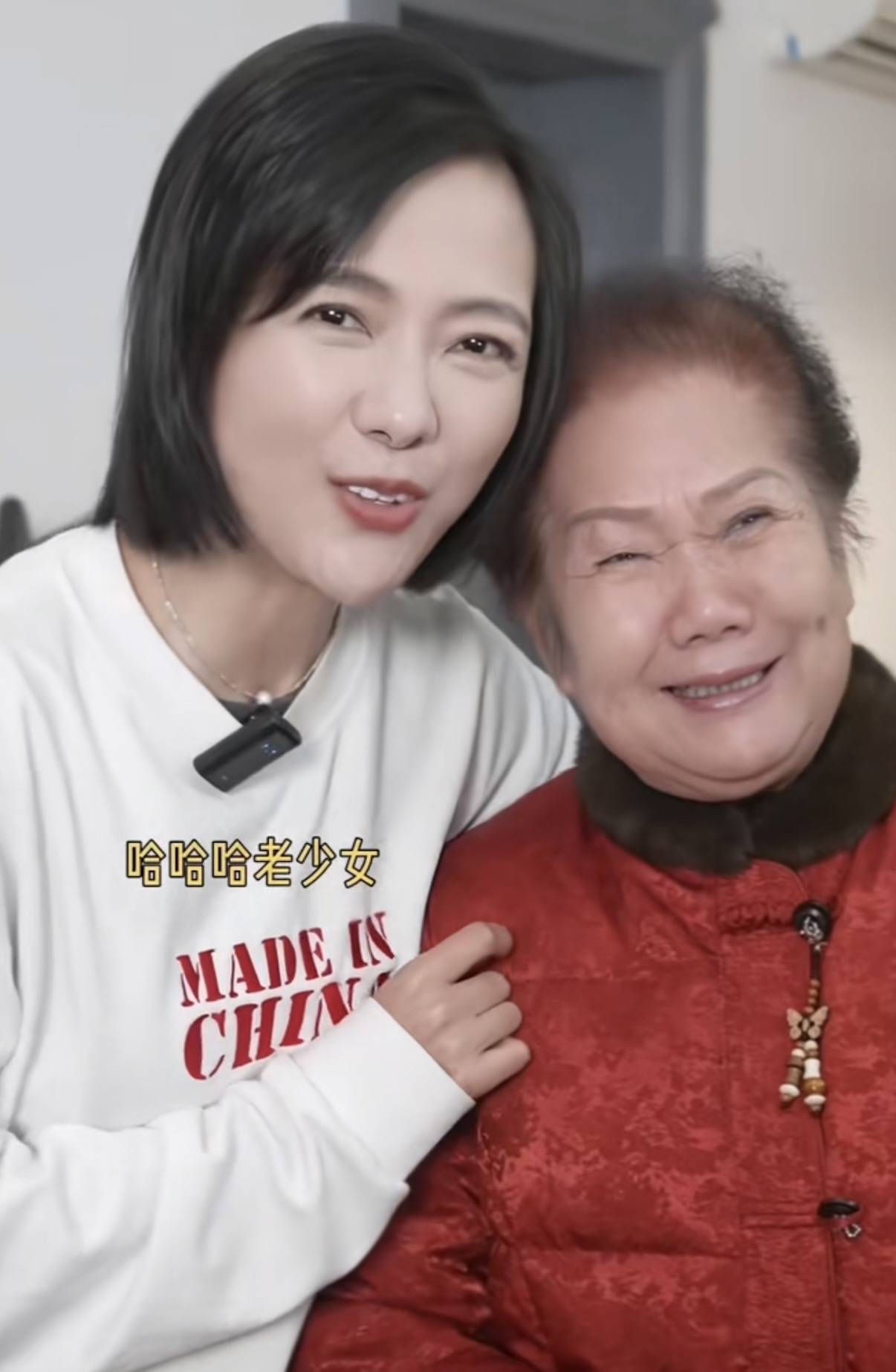 杨乐乐的妈妈一人住在这套房子里,还是非常宽敞的。乐乐回来陪妈妈过年,还给妈妈买了一件红色的新中式上衣,母亲穿起来特别喜庆。