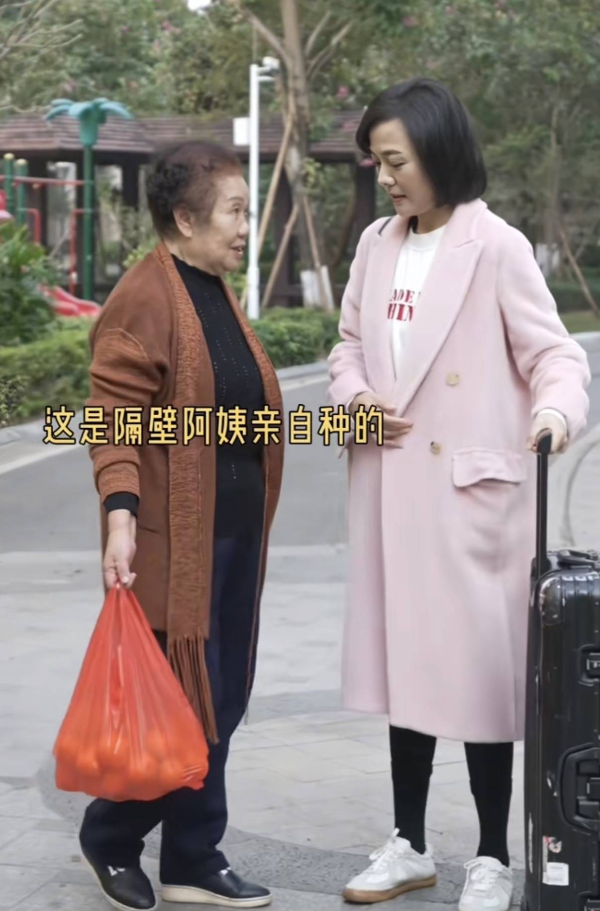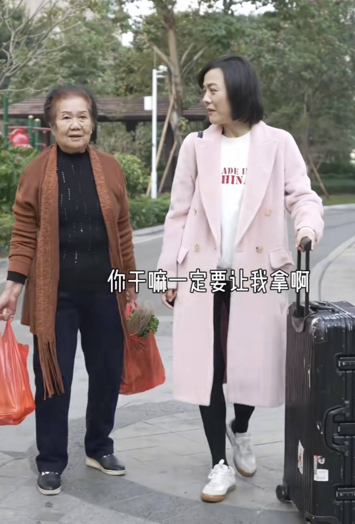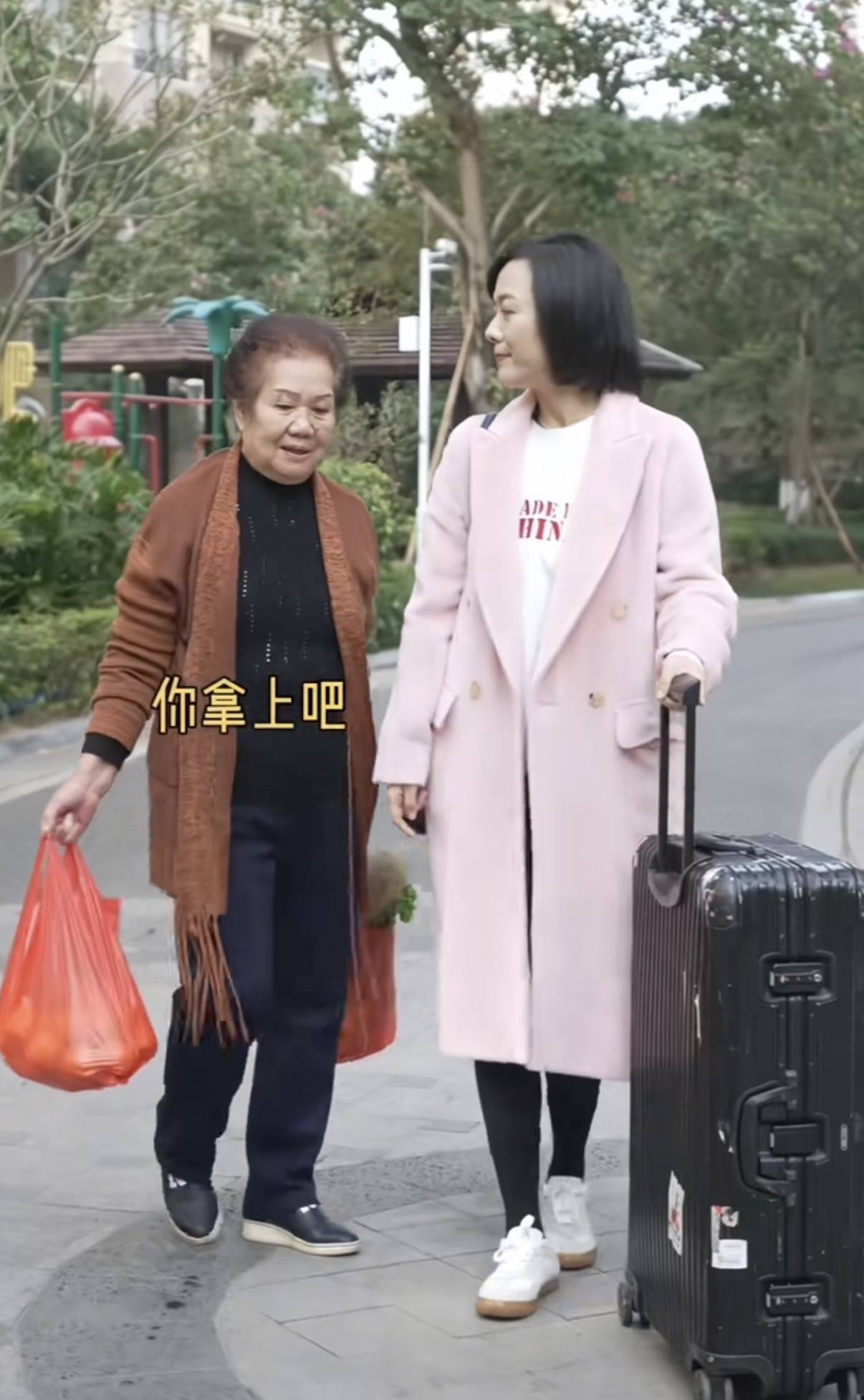 临走的时候,杨乐乐又穿上来时的那件粉色大衣,托着大大的黑色行李箱。母亲给她带了一大兜青菜,还有各种水果。水果让她路上吃,蔬菜说是有机的。