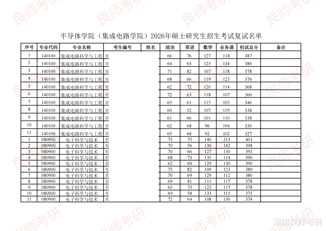 半导体学院(集成电路学院)26考研一志愿复试名单
