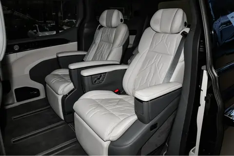 内饰设计延续了极氪品牌一贯的豪华风格,该车采用2+2+3的七座布局,为不同使用场景提供了灵活的空间解决方案。座椅采用Nappa真皮材质包覆,质感上乘且耐用性不错。前排座椅集成了电动调节、加热、通风、记忆和按摩等多项功能,第二排独立座椅同样配备了这些豪华配置。值得一提的是,该车全系标配的零重力座椅能够提供接近失重状态的乘坐体验,长途旅行时能够有效缓解身体疲劳。空间表现是极氪009的核心优势之一。整车座舱面积达到7.4平方米,比同级别的埃尔法多出约10%,这为乘客提供了更加宽敞的活动空间。以身高182cm的体验者为例,调整好前排驾驶位后,头部空间约有一拳三指的余量,坐姿较为舒适。保持前排座椅位置不变,该体验者进入第二排后,腿部空间超过两拳半,头部空间约有一拳二指,乘坐舒适度相当不错。得益于超宽中央通道和一级低台阶设计,从第二排进入第三排非常便利,这一设计对于"三代同堂"的家庭出行场景特别友好。第三排空间对于成年人来说基本够用,身高182cm的乘客坐进后腿部空间约有四指,头部空间略显紧凑但可以接受。