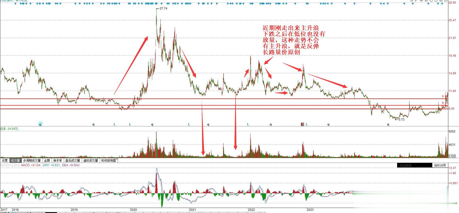 这是最为容易做出来的预判,而只要是下面没有筹码出来,那么后面就不会走出来主升浪,所以虽然股价在低位震荡一段时间了,但是一直是明显缩量的,那么在这种情况下,股价出现了短期大幅快速的上涨,还是突破上涨,也依然不会是主升浪,而就是一种反弹上涨,后面还会出现回调下跌的,以上都是本人的浅薄的看法,仅供参考。
