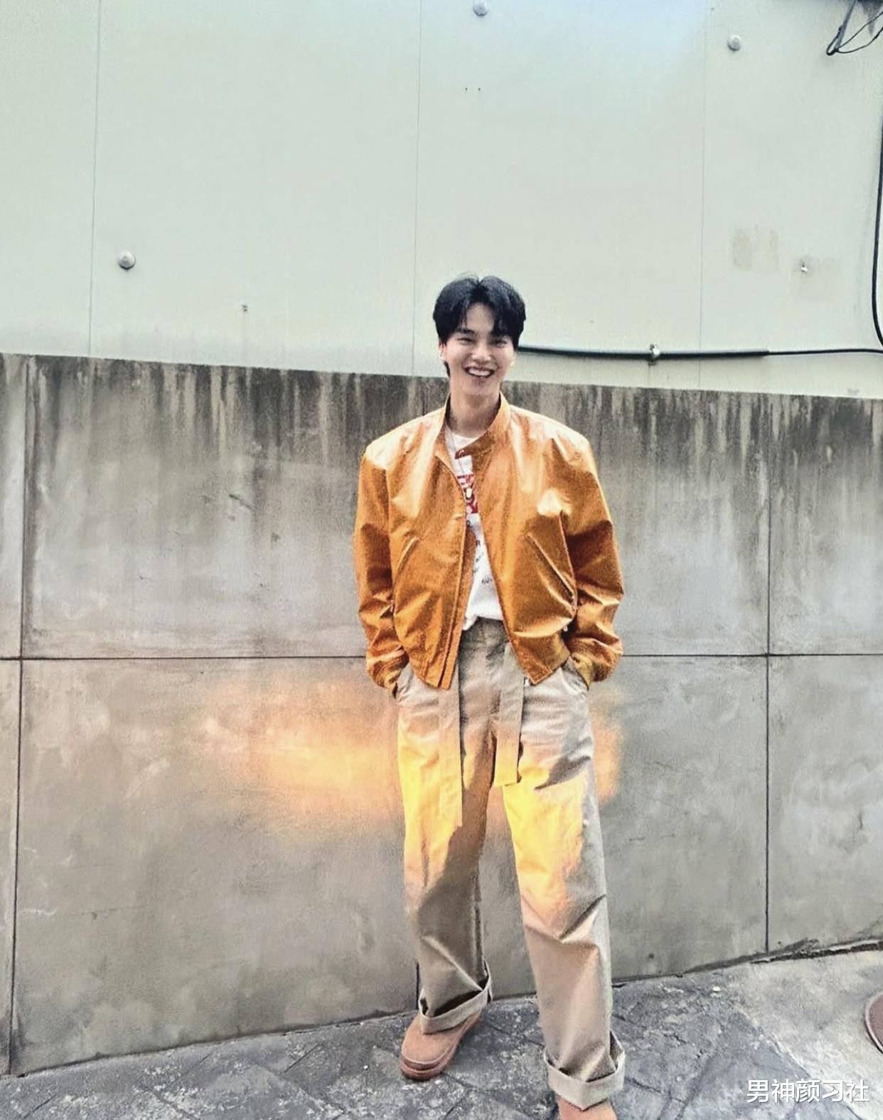 皮衣是宋江塑造酷感造型的另一大单品。他曾大胆挑战橘色皮衣,内搭选择简约的浅色系,下半身搭配宽松的卡其色裤子。造型充满了个性和街头感,特别有存在感。