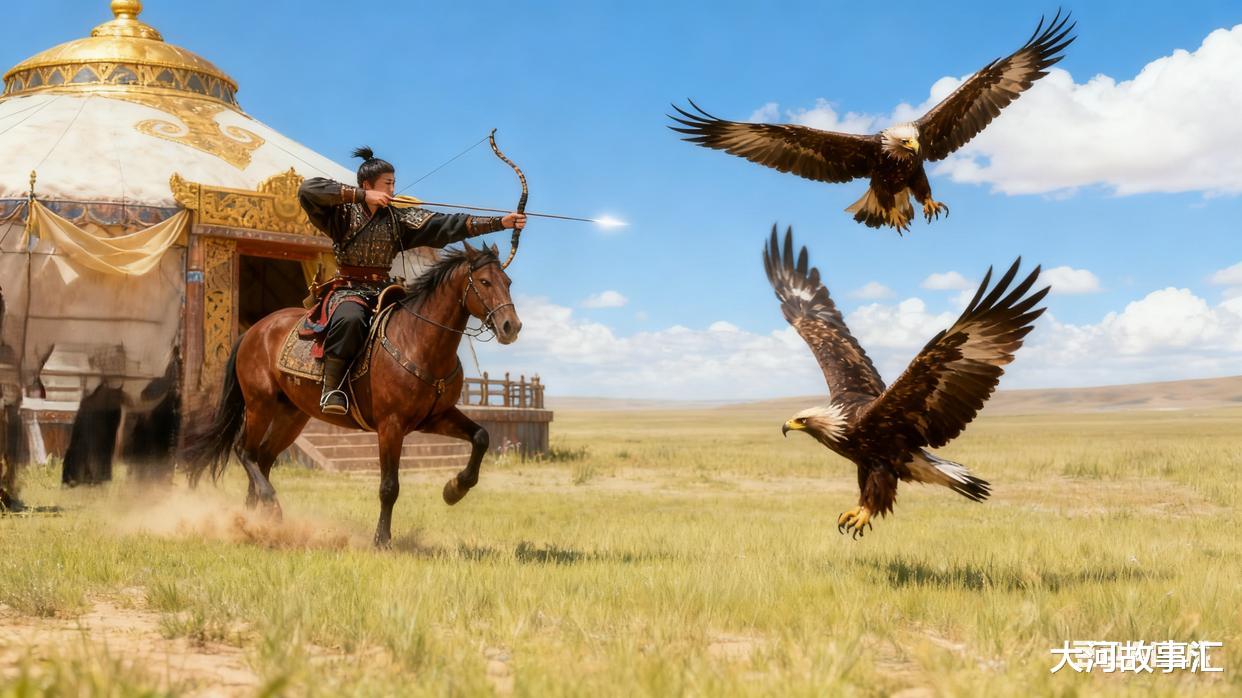 弓弦响处,那雕应声而落,精准得如同二十多年前沙钵略帐前那一幕的重演。