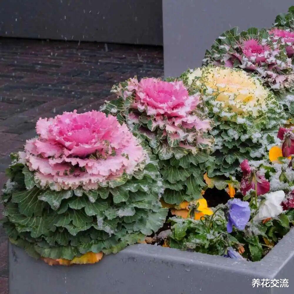 而盆栽养护的羽衣甘蓝耐寒能力会稍差一些,由于盆土较少,根系的耐冻能力随之下降,一般可以忍受零下5度到零下10度的低温。如果冬季想将它放在户外养护,建议放在背风的墙角或阳台内侧,避开寒风侵袭。