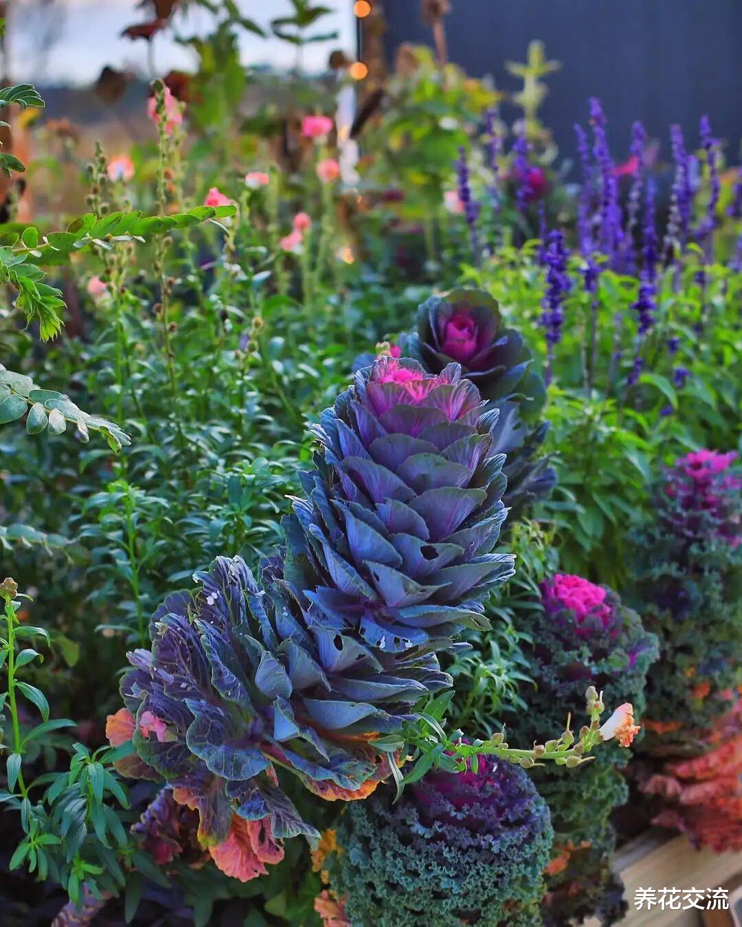 羽衣甘蓝是非常典型的喜冷凉蔬菜,但近年来它也变成了很流行的观赏植物,它适合在秋季天气变凉爽之后入手(可自己播种)。它的园艺观赏品种特别多,颜色也丰富,叶片可以长成紧凑的莲花形态。