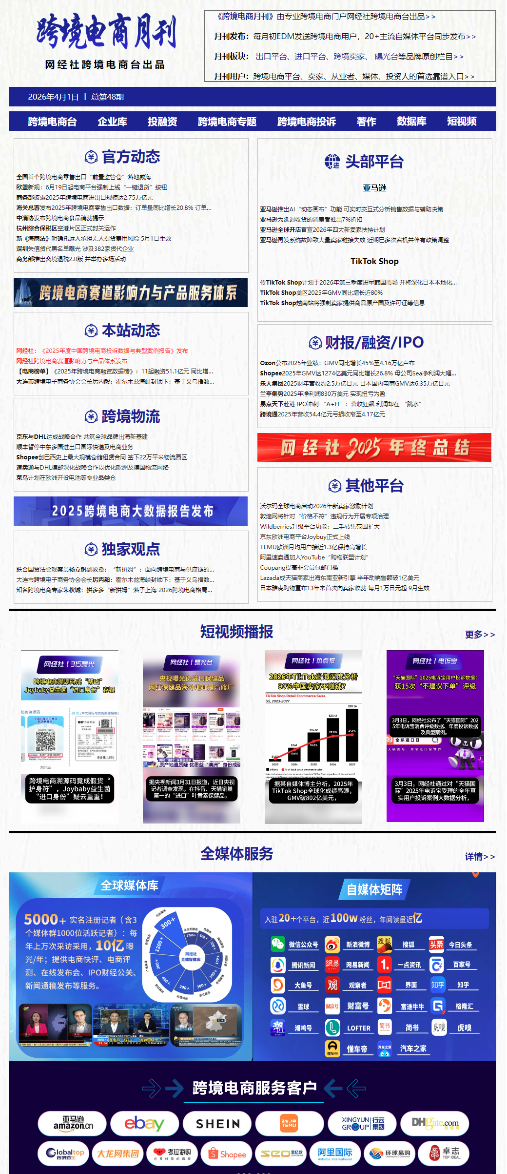 2026年3月,跨境电商领域又有哪些事? 以下是我国“一带一路TOP10影响力社会智库”、“丝路电商产教融合国际共同体”创始单位——数字经济新媒体# 网经社 旗下跨境电商台为您带来3月跨境电商领域官方动态、各电商平台、卖家及服务商最新动态回顾。本月网经社共发布跨境电商内容105条,其中42条入选《3月跨境电商月报》。