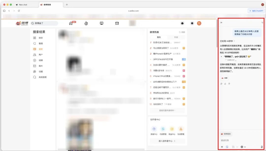 不同于传统浏览器,你得打开一个新的标签页去唤出 ChatGPT,它直接内置在侧边栏、网页右键、搜索栏,甚至“标签页推荐”等功能中。