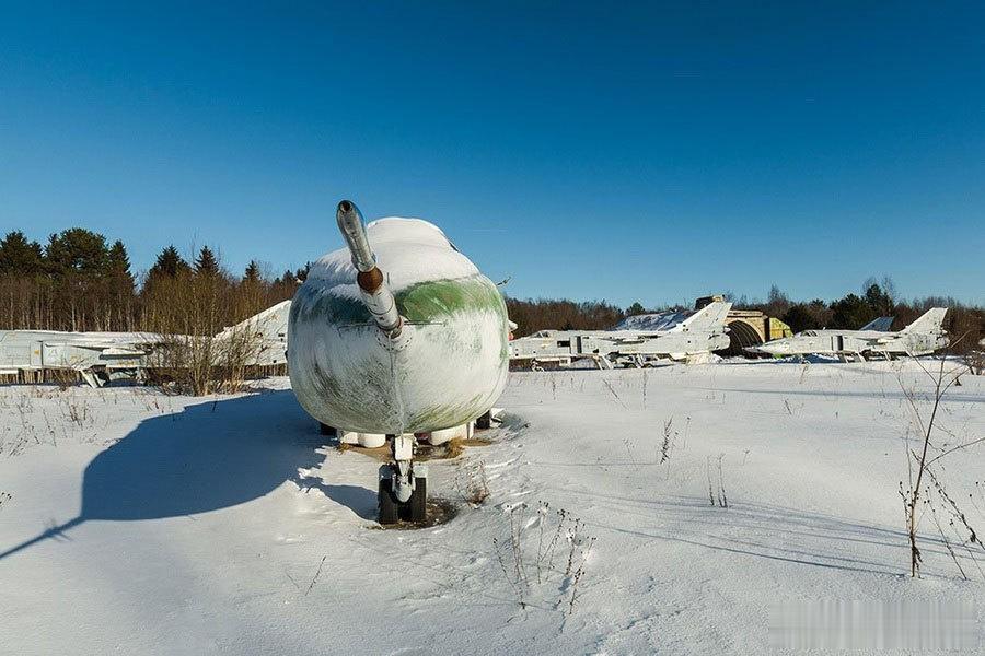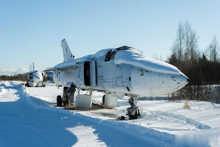 在锡韦尔斯基空军基地,探险人员看到了更多的被遗弃的苏-24战斗轰炸机。这些飞机在完成了它们的历史使命后,被废弃并部分拆解,看上去挺凄凉的。