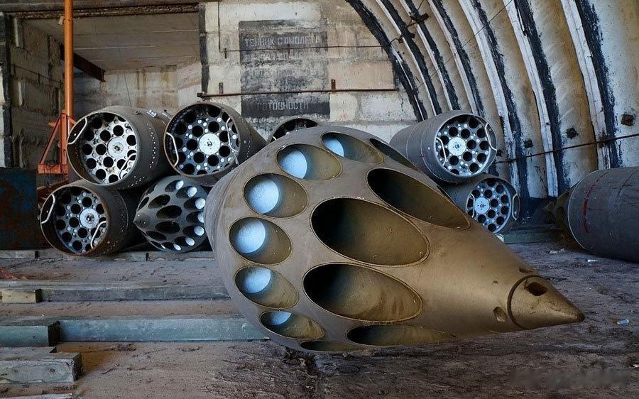 在飞机库的一角,他们看到了几个奇怪的物体,上面有很多规则的圆形孔洞。实际上,这些是在固定翼飞机上挂载使用的火箭巢。